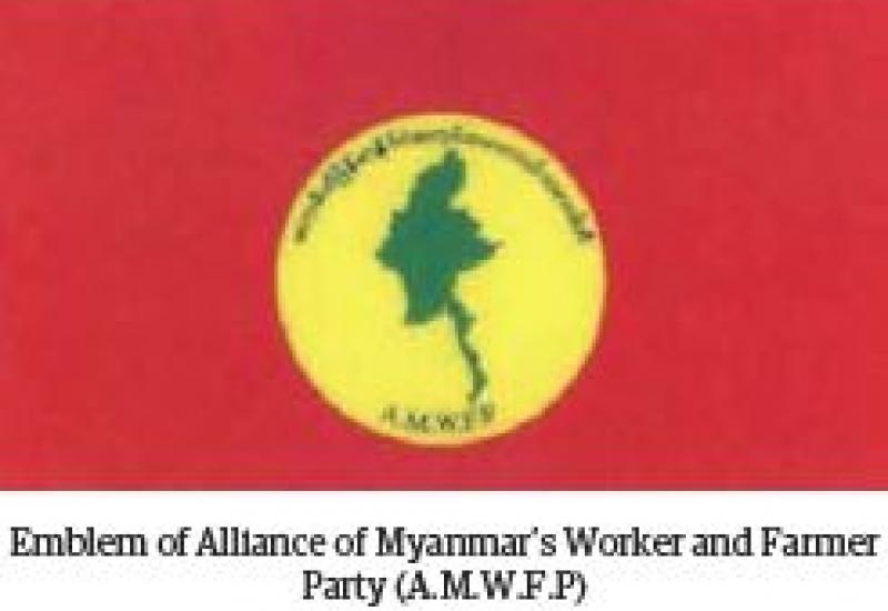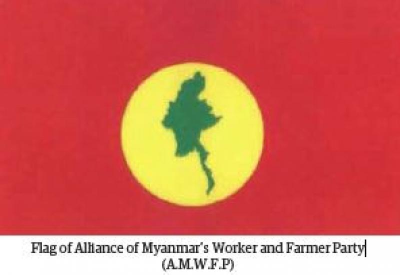 THE Alliance of Myanmar’s Worker and Farmer Party (A.M.W.F.P) headquartered at No. 2626, Inn Win (4) Street, Nandawyar Ward, Bago in Bago Region, submitted an application for registration as a political party in accord with the Section 5 of the Political Parties Registration Law on 19-12-2019. In their application, they mention that they will use the name, the flag and the emblem as described hereunder.