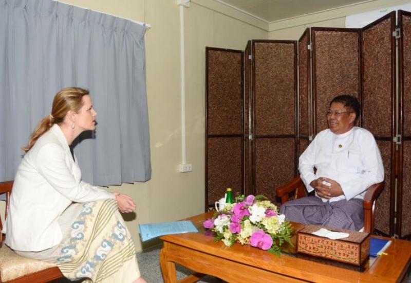 U Than Swe, Deputy Prime Minister and Union Minister for Foreign Affairs of the Republic of the Union of Myanmar, received Ms Sara Austin Netzer, Country Director and Representative of the United Nations Office for Project Services (UNOPS) to Myanmar, yesterday at the Ministry of Foreign Affairs in Nay Pyi Taw.