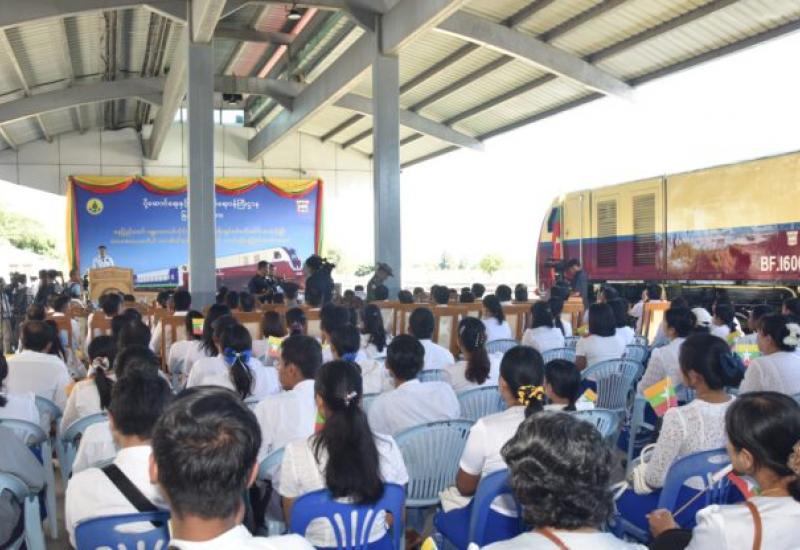 A ceremony to inaugurate the launch of a battery electric locomotive with air-conditioned carriages on the Nay Pyi Taw–Mandalay railway section was held yesterday morning at Platform No 1 of the Nay Pyi Taw Railway Station.