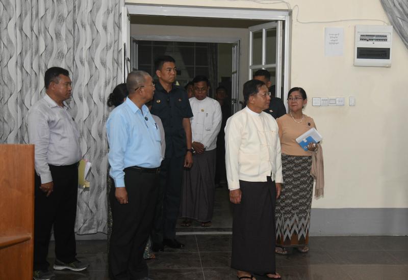 SAC Member and Union Minister for Border Affairs Lt-Gen Yar Pyae, accompanied by Deputy Minister Maj-Gen Phyo Thant, the Permanent Secretary, and other officials, inspected the construction of temporary steel-structured buildings supervised by the ministry’s engineering team to accommodate earthquake-affected personnel and their families, as well as the living conditions in these buildings, at the ministry’s office area yesterday morning.