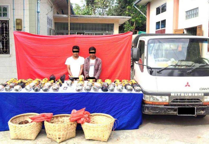 A combined team comprising members of the Anti-Drug Police Force searched a Mitsubishi Canter driven by Saw Tha Htoo, accompanied by Saw Naing, near Nantsiaung Village in Panglong Village-tract, Mohnyin Township, at 6 pm on 21 April. The police seized 43.5 kilogrammes of opium extract worth K60.9 million and 35 kilogrammes of raw opium valued at K42 million.
