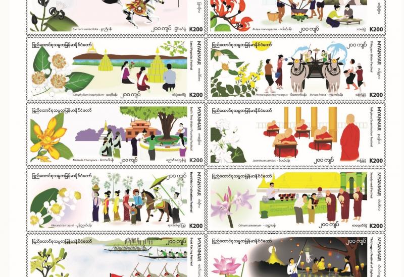 MYANMA Post under the Ministry of Transport and Communications will issue a special block stamp worth K2,400 to commemorate the twelve seasonal festivals and flowers.