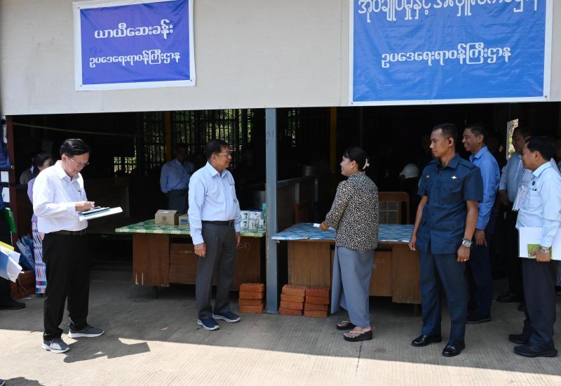 Union Minister for Health Dr Thet Khaing Win met Ms Nadia Khoury, Head of Delegation of the IFRC (International Federation of Red Cross and Red Crescent Societies) in Myanmar, and Dr Myo Nyunt, President of the Myanmar Red Cross Society, at the Ministry’s temporary office in Nay Pyi Taw yesterday morning.