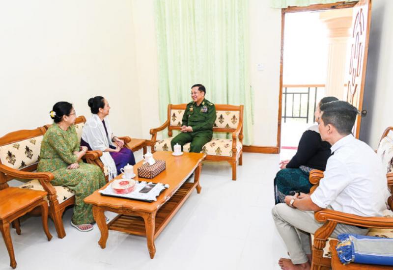 Chairman of the State Administration Council Commander-in-Chief of Defence Services Senior General Min Aung Hlaing and his wife Daw Kyu Kyu Hla greeted retired senior Tatmadaw officers who served duties in Tatmadaw and their wives at Bayintnaung Villa in Nay Pyi Taw yesterday morning.