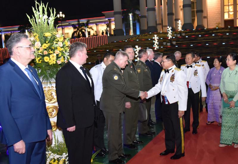 A pre-dinner to mark the 80th Anniversary of Armed Forces Day 2025 hosted by Chairman of the State Administration Council Commander-in-Chief of Defence Services Senior General Min Aung Hlaing and his wife Daw Kyu Kyu Hla took place at the square of Zeyathiri Beikman in Nay Pyi Taw yesterday evening.