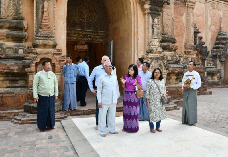 Former Nepali Prime Minister Mr Madhav Kumar Nepal and his delegation, who are currently visiting Myanmar, paid a visit to Htilominlo Pagoda in the Bagan Ancient Cultural Zone yesterday morning.