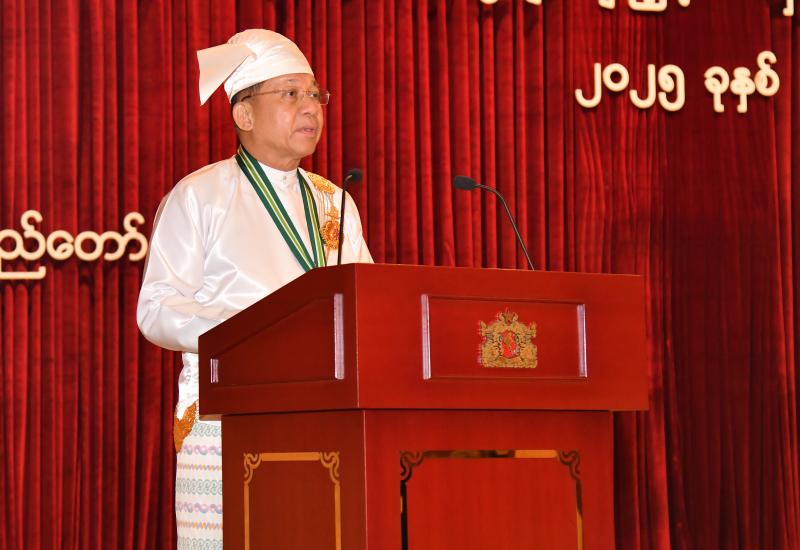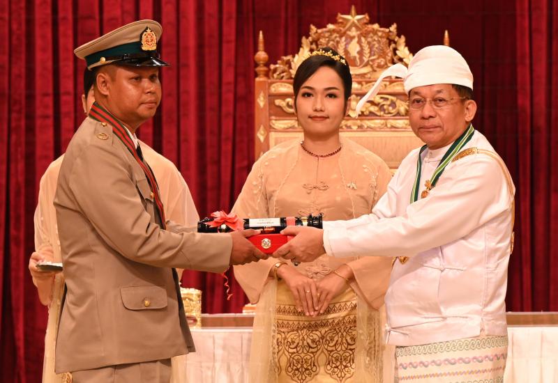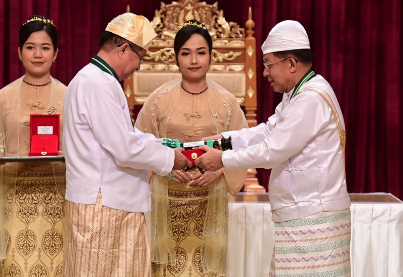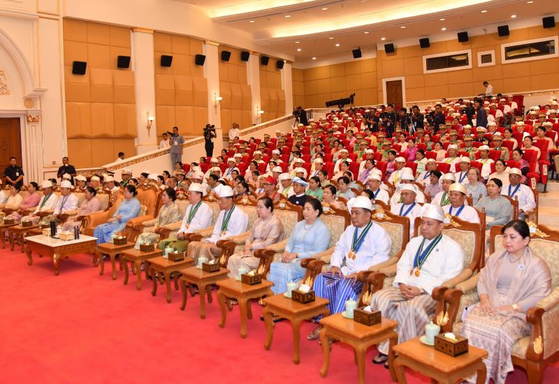 Chairman of the State Administration Council Prime Minister Senior General Thadoe Maha Thray Sithu Thadoe Thiri Thudhamma Min Aung Hlaing conferred honorary titles for 2025 on relevant recipients at Thabin Hall of the SAC Chairman Office in Nay Pyi Taw yesterday morning.