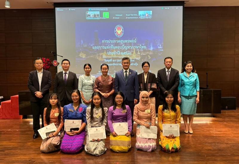 The Royal Thai Embassy in Yangon, in collaboration with the Yangon University of Foreign Languages (YUFL) and the Mandalay University of Foreign Languages (MUFL), organized the Thai Speech and Quiz Competition 2025 at the embassy on 19 February 2025.
