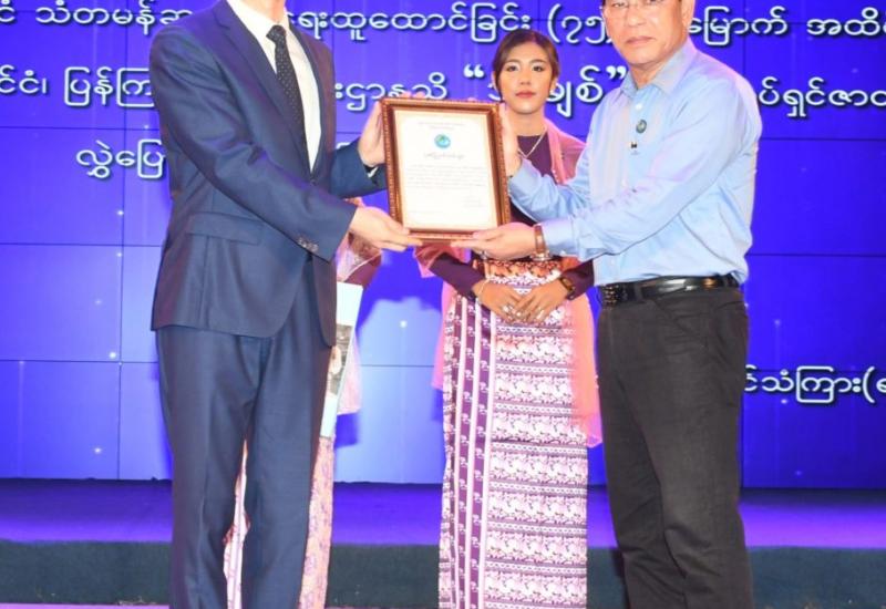 China handed over the ‘Thu Chit’ movie to Myanmar, marking the 75th anniversary of the establishment of diplomatic relations between Myanmar and China, at MRTV Studio A in Yangon yesterday.