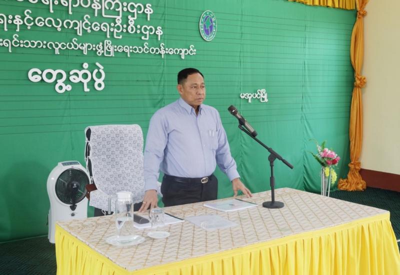 State Administration Council Vice-Chairman Deputy Prime Minister Vice-Senior General Soe Win delivered a speech at the work coordination meeting 1/2025 of the Illegal Trade Eradication Steering Committee at the Ministry of Commerce in Nay Pyi Taw yesterday.