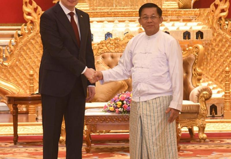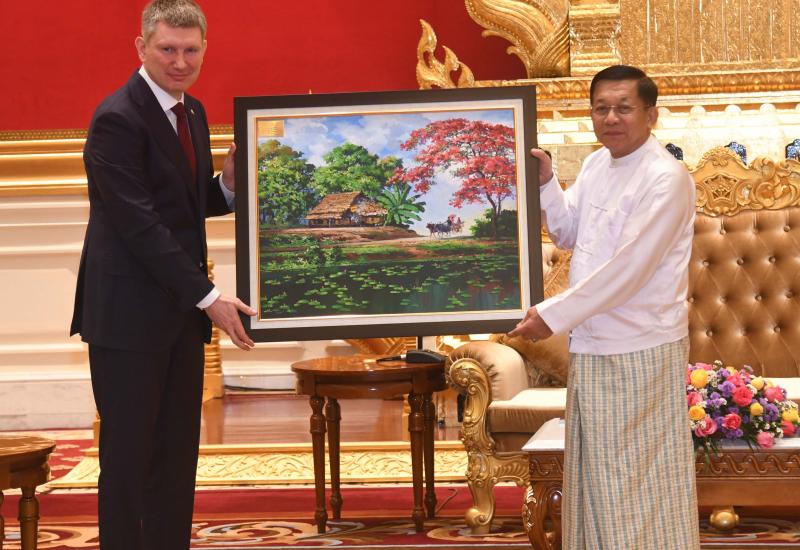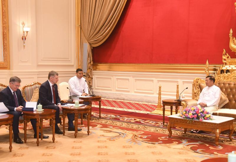 Chairman of the State Administration Council Prime Minister Senior General Min Aung Hlaing received a delegation led by Minister of Economic Development of the Russian Federation Mr Maxim Reshetnikov at the Credentials Hall of the Office of the SAC Chairman in Nay Pyi Taw yesterday afternoon.
