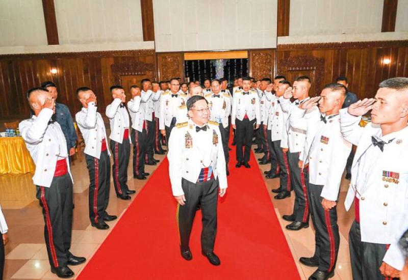 State Administration Council Chairman Defence Services Commander-in-Chief Senior General Min Aung Hlaing attended the graduation dinner of the 128th intake Thura Company of Tatmadaw (Army) Officer Training School (Bahtoo) at the military appointment hall of the school in Bahtoo yesterday evening.