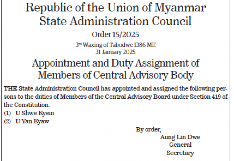 Appointment and Duty Assignment of Members of Central Advisory Body