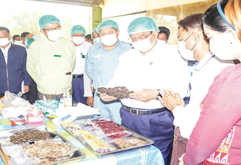 Earlier in yesterday morning, Union Minister for Industry Dr Charlie Than visited the dried meat businesses and frozen meat production units in KanU Model village, Meiktila Township.