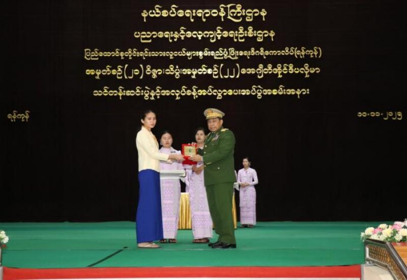 The graduation ceremony of the BA and BSc Degree Course 21, the AGTI Diploma Course 22, and the job appointment letter handover ceremony of Nationalities Youth Resource Development Degree College (Yangon) took place yesterday at the convocation hall of the Degree College in Dagon Myothit (Seikkan) Township, Yangon Region.