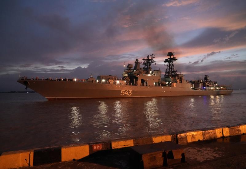 The Russian Pacific Fleet’s frigate Marshal Shaposhnikov, corvette Gremyashchiy, and support vessel Boris Butoma arrived at Thilawa Port in Yangon, Myanmar, yesterday evening for the third Myanmar-Russia joint naval security exercise and a goodwill visit.