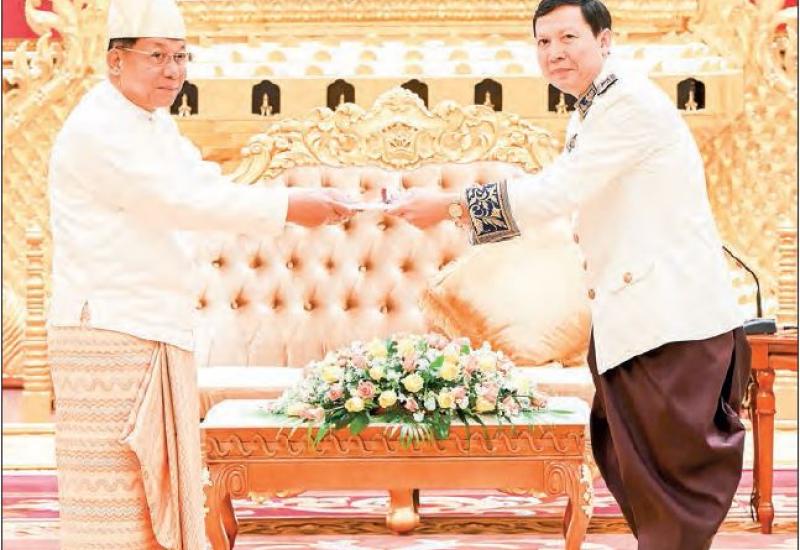 Ambassador-designate of the Lao People’s Democratic Republic to Myanmar Mr Bounphieng Chanthavong presented his Credentials to State Administration Council Chairman Prime Minister Senior General Min Aung Hlaing at the Credentials Hall of the Office of SAC Chairman in Nay Pyi Taw at 10:30 am yesterday.