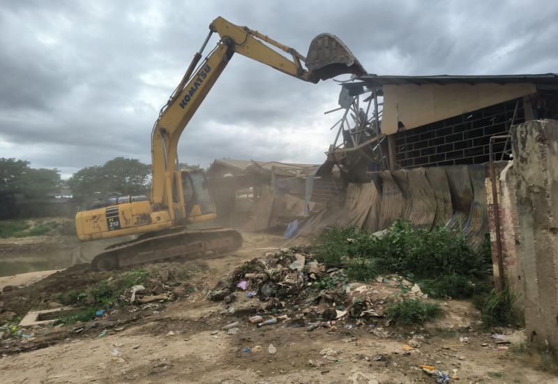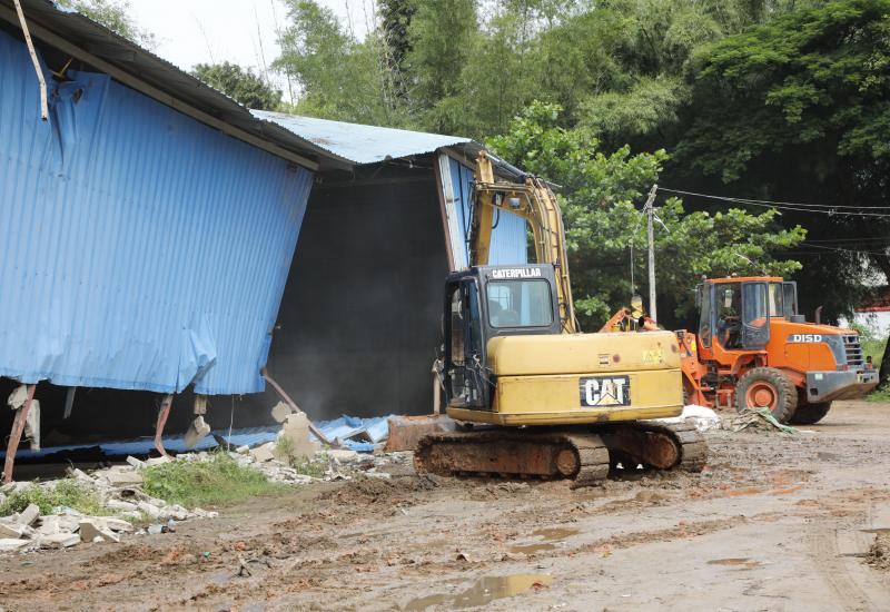 Illegal gates have been opened along the banks of the Thaungyin River in Myawady Township, Kayin State, where armed terrorist groups have been collecting money to import, store, and distribute illegal goods from abroad. Tatmadaw has now regained control of such area and is demolishing those trade gates and warehouses used for storing and distributing such goods.