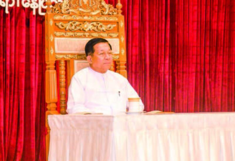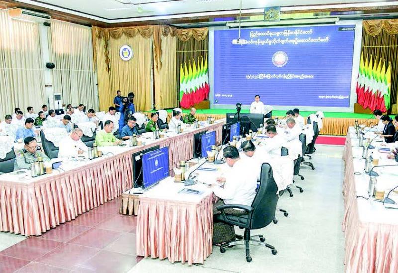 State Administration Council Vice-Chairman Deputy Prime Minister Vice-Senior General Soe Win delivered a speech at the work coordination meeting 5/2024 of the Illegal Trade Eradication Steering Committee at the Ministry of Commerce in Nay Pyi Taw yesterday.