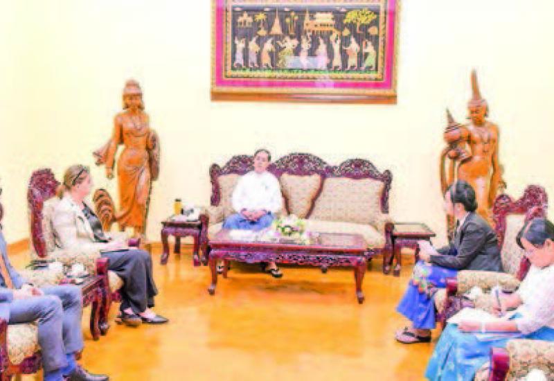 Deputy Minister for Social Welfare, Relief and Resettlement U Soe Kyi received Ms Elena Ajmone Sessera, Resident Representative of the International Committee of the Red Cross (ICRC) to Myanmar, and her team yesterday afternoon at the ministry’s reception hall.