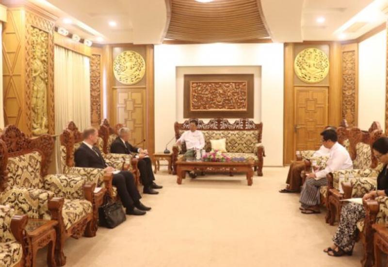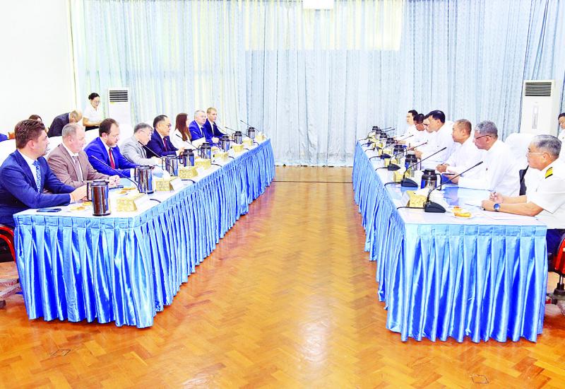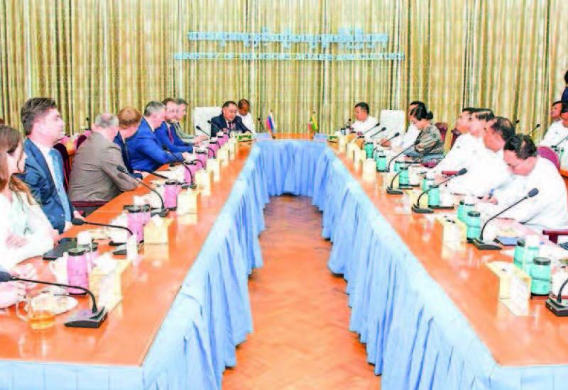 State Administration Council Member, Deputy Prime Minister, and Union Minister for Transport and Communications General Mya Tun Oo received a delegation led by Mr Sholban Kara-Ool, Deputy Chairman of the State Duma of the Federal Assembly of the Russian Federation, at the ministry yesterday.