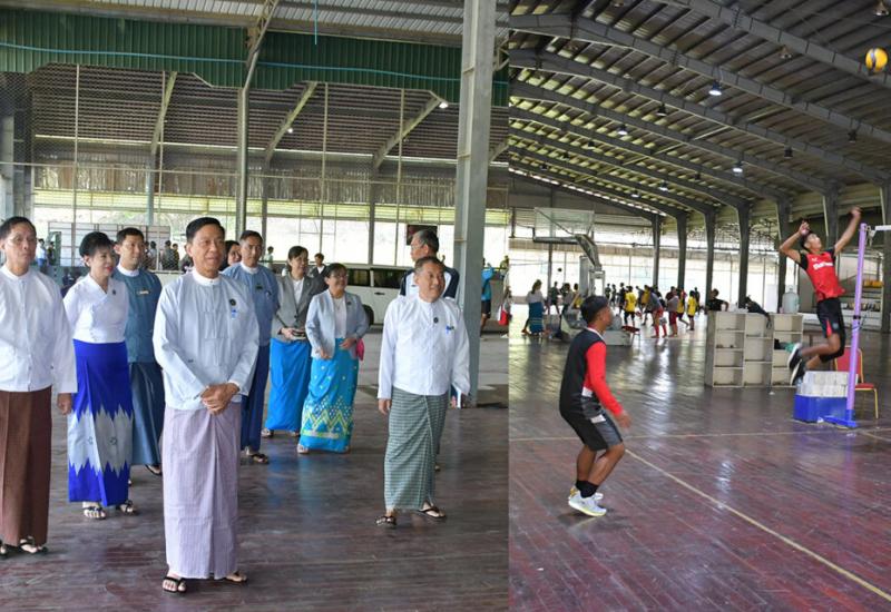 Union Minister for Social Welfare, Relief and Resettlement Dr Soe Win and the deputy minister visited the Wunna Theikdi Sports Training Camp yesterday morning to observe the training of the ministry’s sports teams preparing for the Fifth National Sports Festival.