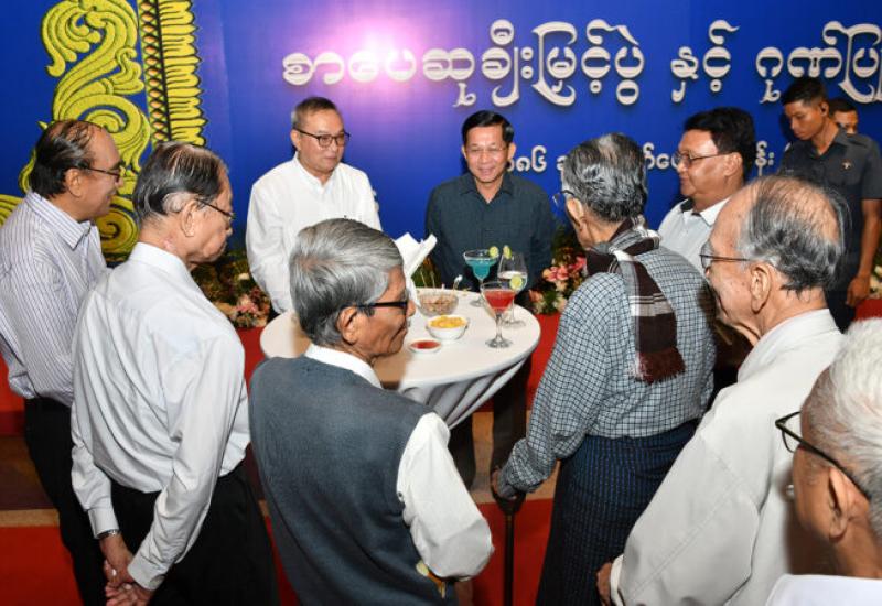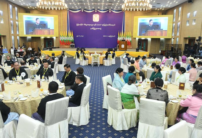 Chairman of the State Administration Council Prime Minister Senior General Min Aung Hlaing attended the dinner in honour of the winner in the 2023 National Lifetime Award for Literary Achievement, National Literary Award and Sarpay Beikman Manuscript Award Contest in commemoration of the 75th Anniversary (Diamond Jubilee) National Literary Award ceremony at the Myanmar International Convention Centre I in Nay Pyi Taw yesterday evening.