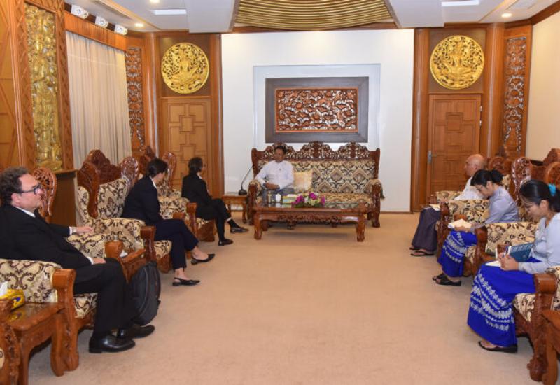 Union Minister for Investment and Foreign Economic Relations Dr Kan Zaw received the delegation led by Ms Maria Izaskun Gaviria Ayucar, Senior Fund Portfolio Manager of Global Fund at the Ministry of Investment and Foreign Economic Relations, Nay Pyi Taw, yesterday.
