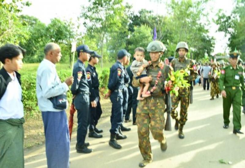 Tatmadaw members who fought bravely on the frontlines and achieved successive victories were warmly welcomed upon their victorious return. A ceremony to honour and celebrate them took place on 7 November at their local battalion in Yaksawk Township.