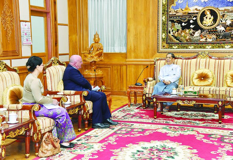 UNION Minister for the Ministry 2 of the President’s Office U Ko Ko Hlaing received Mr Justin Brady, Head of Office for the United Nations Office for the Coordination of Humanitarian Affairs (UNOCHA), yesterday at the parlour of the Office of the National Defence and Security Council in Nay Pyi Taw.