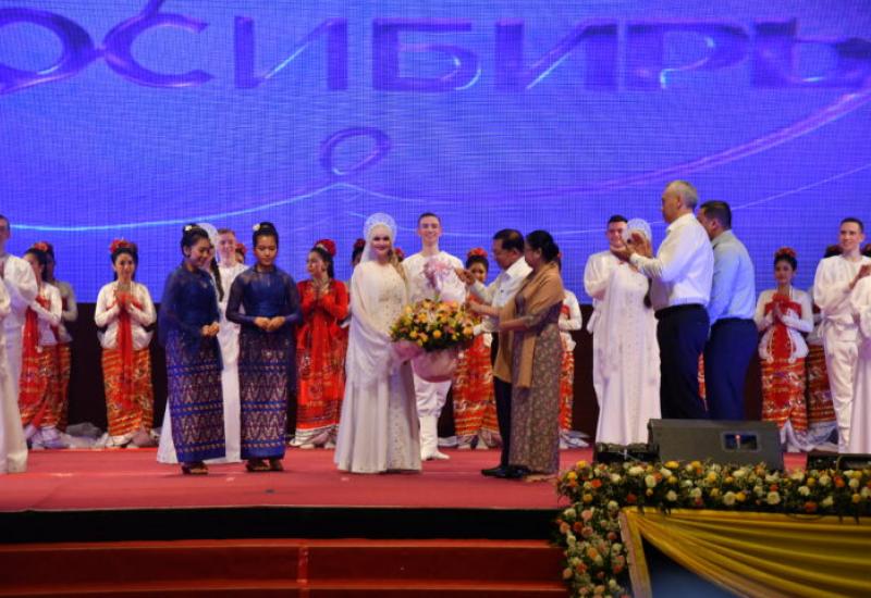Acting President of the Republic of the Union of Myanmar and Chairman of the State Security and Peace Commission Senior General Min Aung Hlaing and his wife Daw Kyu Kyu Hla watched the “Great Russia and Siberia” variety show performed by “Chaldony” State Song and Dance Ensemble of Novosibirsk, the Russian Federation, at the Myanmar International Convention Centre I (MICC I) in Nay Pyi Taw, yesterday afternoon.