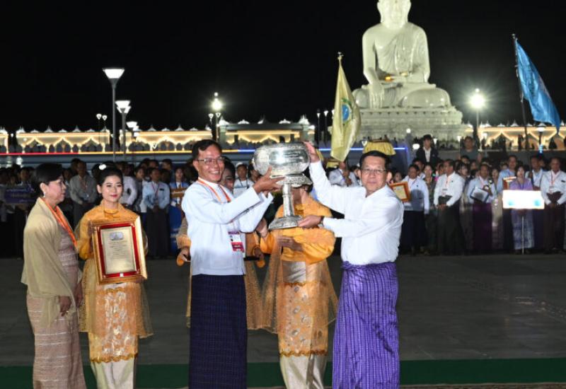 The award ceremony for the 2025 Tazaungdine lighting festival, the hot-air balloon launch competition, and the Matho robe-weaving competition was held yesterday evening at the fountain square in the Maravijaya Buddha Garden in Dekkhinathiri Township, Nay Pyi Taw Union Territory. The ceremony was attended by Acting President of the Republic of the Union of Myanmar and State Security and Peace Commission Chairman Senior General Min Aung Hlaing.