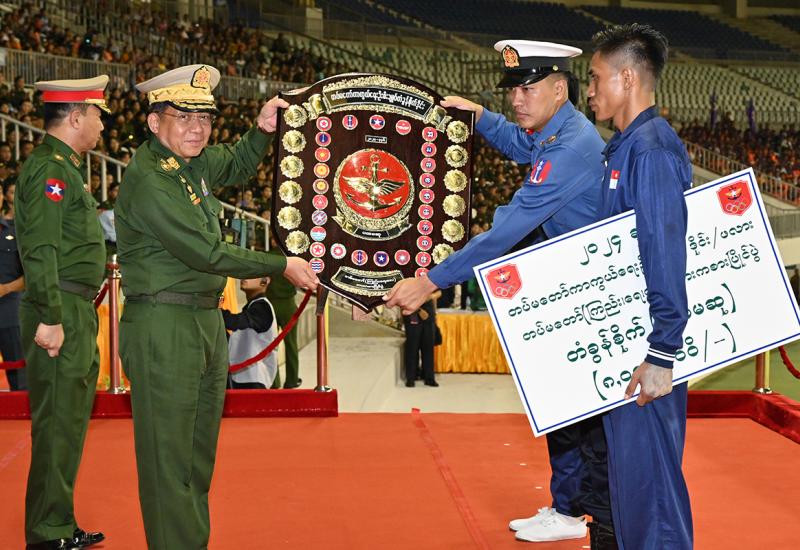 Chairman of the State Administration Council Commander-in-Chief of Defence Services Senior General Min Aung Hlaing attended the awarding of the 2024 Tatmadaw (Army, Navy and Air) Sports Competitions at Zeyathiri Tatmadaw Sports Ground in Nay Pyi Taw yesterday afternoon.