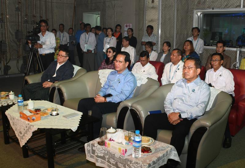 Union Minister for Information U Maung Maung Ohn inspected the work processes at MRTV in Yangon and watched the fundraising charity show ‘Kunyi Kan Sat Gita Lat Phyit’ for flood victims yesterday.