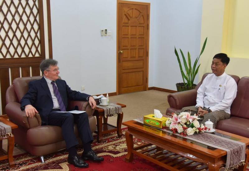 Deputy Minister for Foreign Affairs of the Republic of the Union of Myanmar U Lwin Oo received Mr Iskander Azizov, Ambassador Extraordinary and Plenipotentiary of the Russian Federation to the Republic of the Union of Myanmar, yesterday at the Ministry of Foreign Affairs in Nay Pyi Taw.