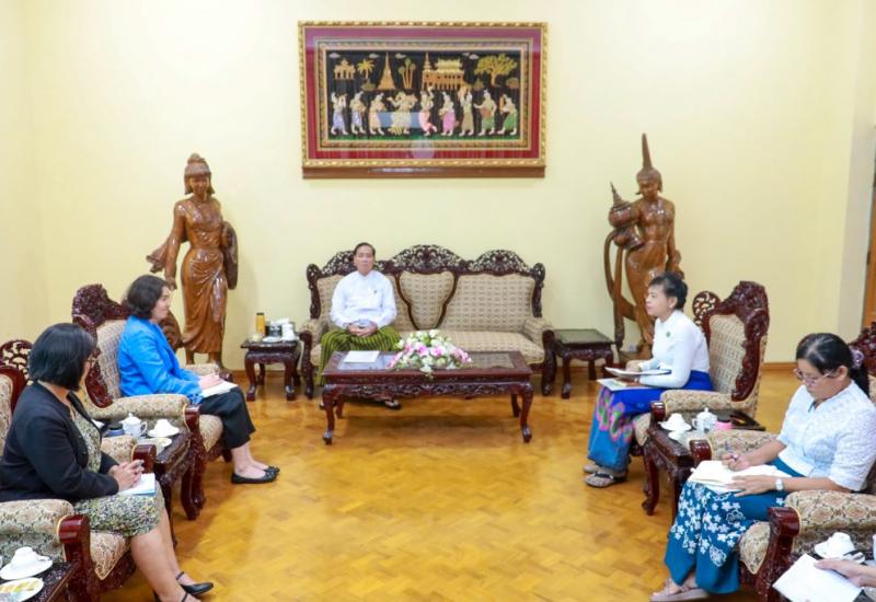 Deputy Minister for Social Welfare, Relief, and Resettlement U Soe Kyi met Ms Hai Kyung Jun, Director of the Asia-Pacific Regional Bureau Office of the United Nations High Commissioner for Refugees (UNHCR), at the ministry at 11:30 am yesterday, according to reports.