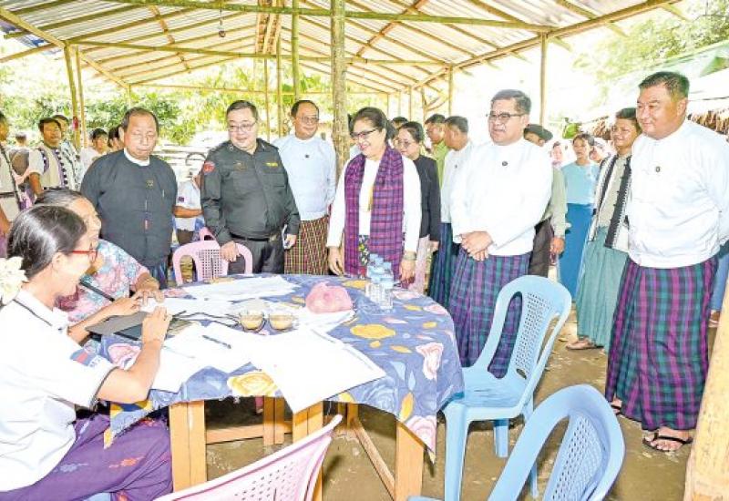 State Administration Council Member Daw Dwe Bu, accompanied by Kachin State Chief Minister U Khet Htein Nan and officials, attended the elderly persons day ceremony and 60th anniversary of Myanmar Police Force Day, and inspected the 2024 household and census enumeration processes in Myitkyina Township yesterday.