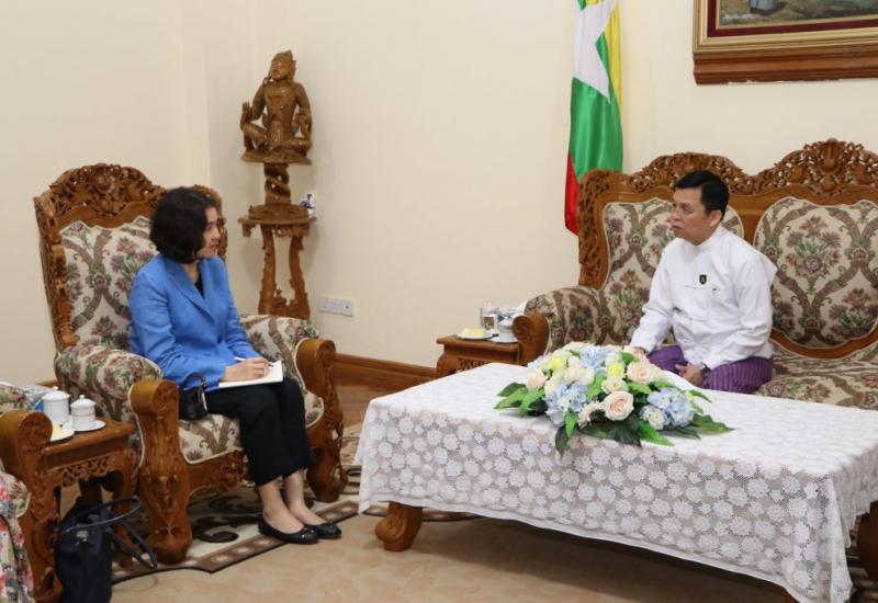Union Minister for the Ministry 2 at the Office of the Chairman of the State Administration Council U Ko Ko Hlaing received the delegation led by Ms Hai Kyung Jun, Director of UNHCR Regional Bureau for Asia and the Pacific, yesterday at the parlour of the Ministry in Nay Pyi Taw.
