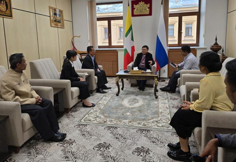 DEPUTY Minister for Agriculture, Livestock, and Irrigation Dr Aung Gyi, who is attending the seventh Global Fishery Forum and Seafood Expo Russia in Saint Petersburg, met staff and families of the Myanmar Consulate-General in the city on 16 September.