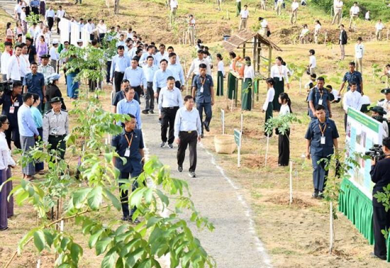 Senior General Min Aung Hlaing stressed the need to emphasize the establishment of forests and greening landscapes steadfastly to ensure lush and green urban and rural areas. Chairman of the State Administration Council Prime Minister Senior General Min Aung Hlaing planted a Gangaw (Mesua ferrea) tree at the third monsoon tree-growing ceremony 2024 at block 16 in Yanaungmyin forest reserve in Lewe Township of Nay Pyi Taw yesterday morning.
