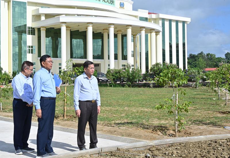 Chairman of the State Administration Council Prime Minister Senior General Min Aung Hlaing, accompanied by Council Joint Secretary General Ye Win Oo and council members, Union ministers and officials, yesterday morning inspected Naypyitaw State Academy and Naypyitaw State Polytechnic University in Nay Pyi Taw Union Territory.