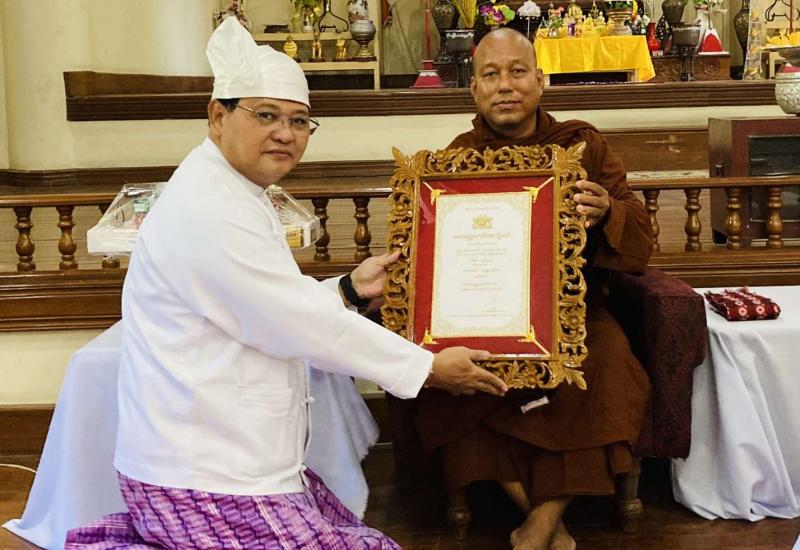 THE year 2024 conferring ceremony of Religious Title offered by the State Administration Council of the Republic of the Union of Myanmar to the Most Venerable Bhaddanta Pandita, serving the religious duties, were presented religious title Maha Saddhammajotikadhaja and insignia by U Myo Myint Maung, Myanmar Ambassador to Nepal, at the Myanmar Golden Temple in Lumbini yesterday.