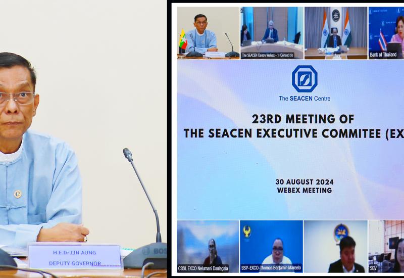 The Myanmar delegation led by Deputy Governor Dr Lin Aung of the Central Bank of Myanmar attended the 23rd meeting of the SEACEN Executive Committee (EXCO) yesterday hosted by the Reserve Bank of India virtually.