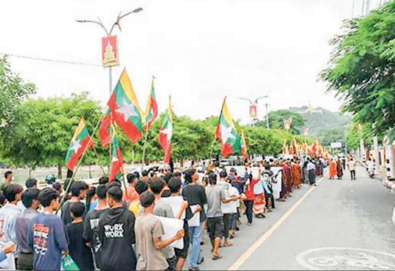 TO protect the capital of Mandalay Region and its cultural heritage, monks and patriotic locals staged a peaceful demonstration at the foot of Mandalay Hill in Aungmyaythazan Township on the afternoon of 29 August.