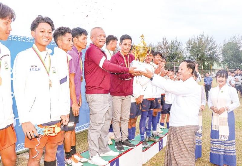 Union Minister for Cooperatives and Rural Development U Hla Moe attended the award ceremony for the 2024 Union Minister’s Cup National (Open) Football Tournament yesterday at No 6 Basic Education High School, Zabuthiri Township, Nay Pyi Taw, yesterday. The event featured competitive matches between teams from various departments and universities.