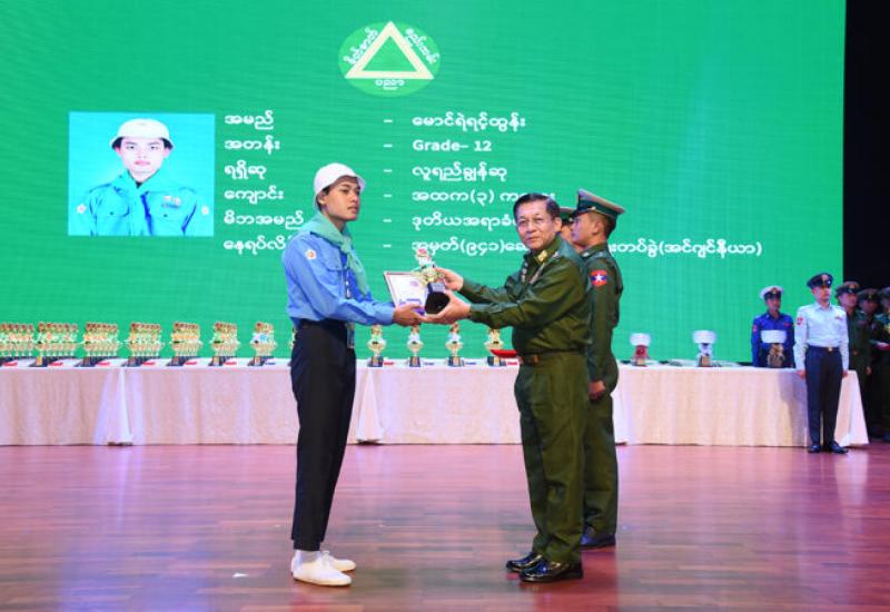 At the ceremony to honour outstanding students, Senior General Min Aung Hlaing revealed that the State Administration Council is implementing the KG+9 education scheme for all school-age children so as to improve education standards.