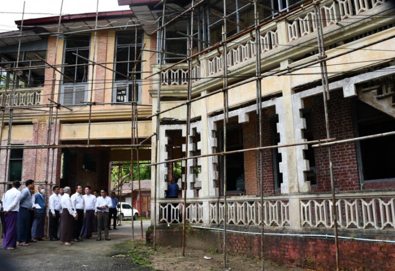UNION Minister for Information U Maung Maung Ohn inspected the renovation work on the former film branch building (Mawgun) in Bahan Township yesterday.
