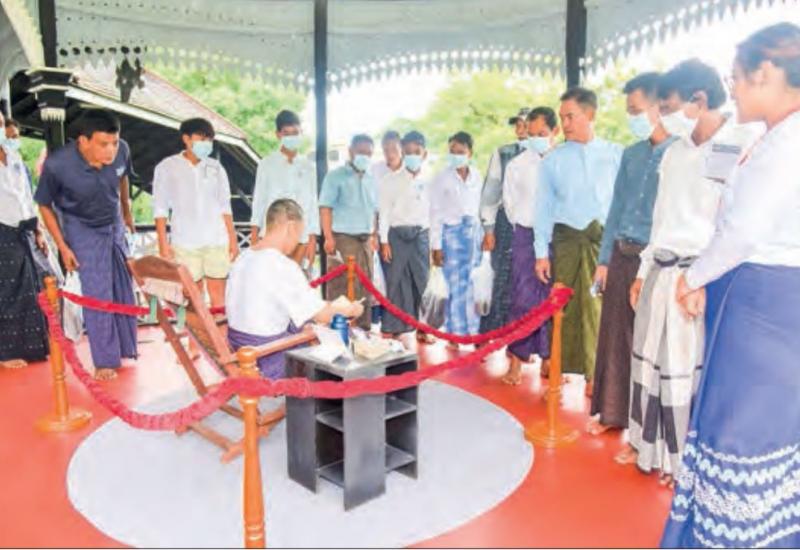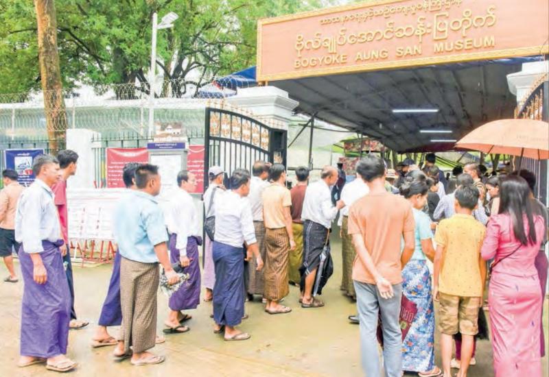 VISITORS, including monks, people and students, visited the Bogyoke Aung San Museum located in Bahan township, Yangon, on the 77th Martyrs’ Day that falls on 19 July 2024.