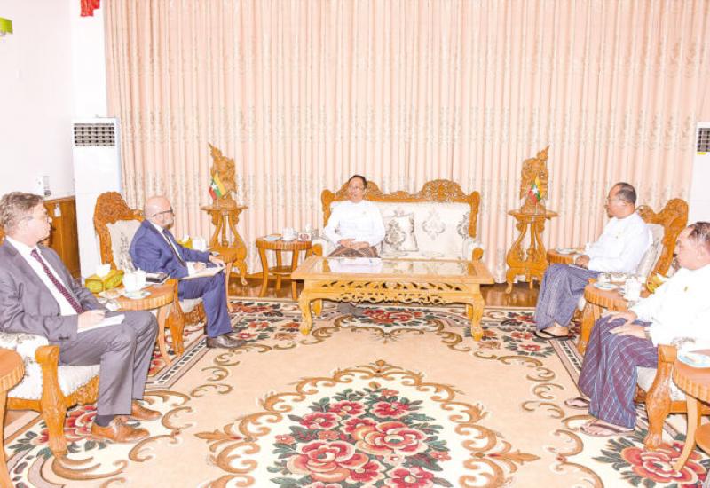Union Minister for Health Dr Thet Khaing Win received Mr Jaime Nadal Roig, Resident Representative of the United Nations Population Fund (UNFPA) in Myanmar, in Nay Pyi Taw yesterday. They exchanged views on collaboration on maternal, reproductive healthcare and family planning between the Ministry of Health and UNFPA, mutual oversight of the partner organization’s healthcare operations, academic cooperation in nursing and midwifery training schools, and continued healthcare cooperation.