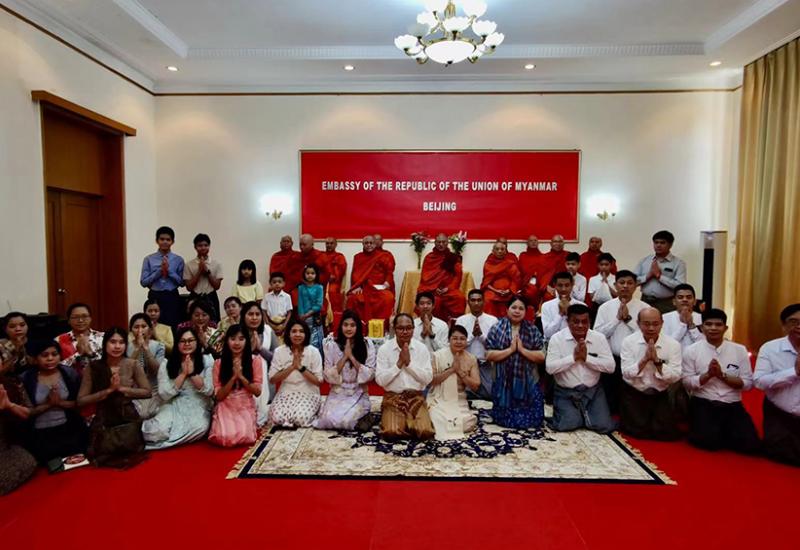 MYANMAR’S Ambassador to the People’s Republic of China U Tin Maung Swe and his wife, Brig-Gen Zaw Zaw Naing, Military Attaché and his wife, staff, and family members of the Myanmar Embassy, along with the Military Attaché Office, offered lunch to 11 monks, led by the Secretary of the State Sangha Maha Nayaka Committee, Venerable Bhaddanta Vasettha Bhivamsa during their visit to China, at 11:00 am on 11 July 2024 at the Myanmar Embassy.